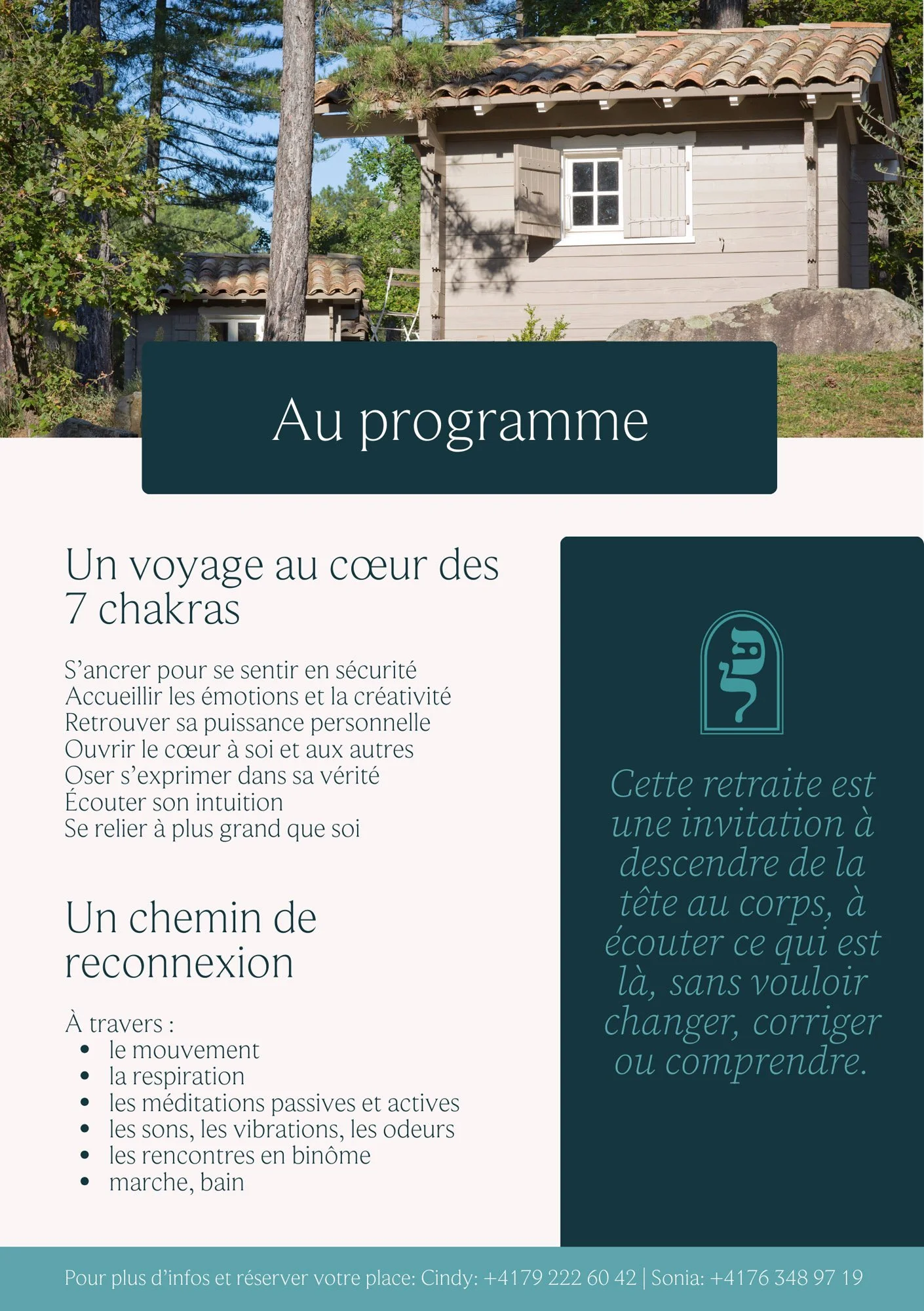 Retraite au cœur de l’être lundi, 6 juillet 2026 08:00 vendredi, 10 juillet 2026 19:00 Vesseaux, Auvergne-Rhône-Alpes, 07200 France (carte) Google Agenda ICS Réserver ma place